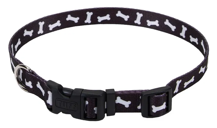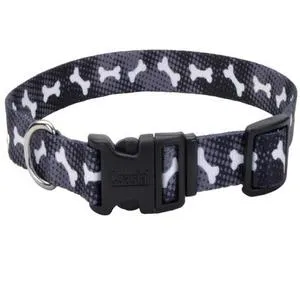 Adjustable Dog Collar, Black Bones, 1" X 18"-26"