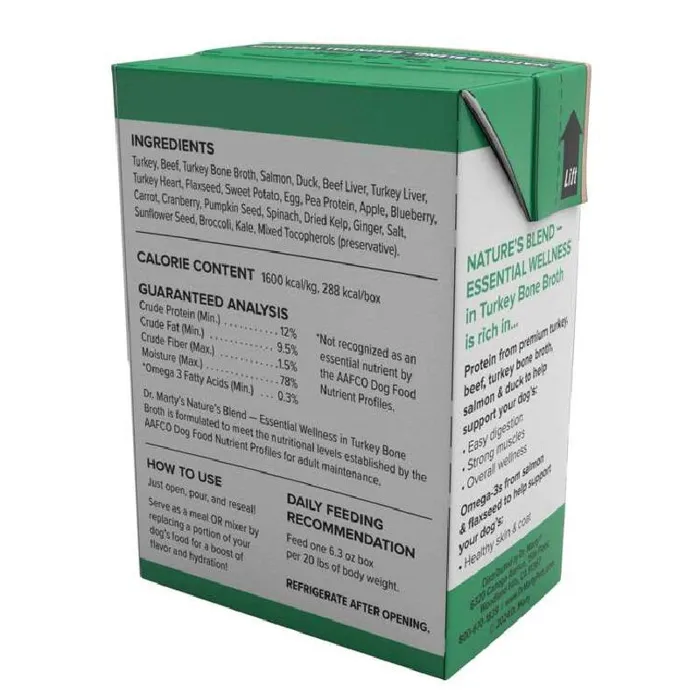 Nature’s Blend - Essential Wellness in Turkey Bone Broth 6.3 oz is gently cooked in turkey bone broth, giving them an irresistible flavor and a smooth pâté texture. What makes them special is that they use the exact same high-quality ingredients as our freeze-dried formulas, just in a new wet-food format to make it easier for pet parents to meet their dog's specific needs