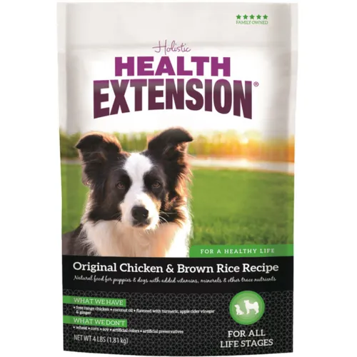 Holistic Health Extension Original Dog Food formula offers your pet the ultimate completely balanced diet containing highly digestible meat proteins. Our unique blend of nutritional supplements separates Health Extension from other super premium dog foods.