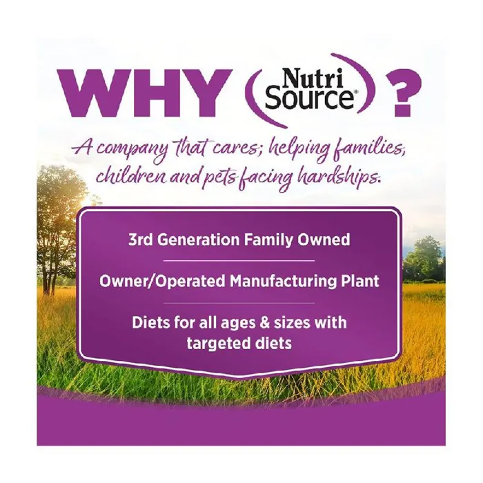 Nutrisource pet food has created the highest-quality food for your beloved pets. Nutrisource is formulated with the best ingredients and supplements that guarantee whole body health. Priority number 1 is to deliver the safest, most nutritious foods possible by examining all raw ingredients and testing every product during and after cooking. A deep rooted sense of family, community and integrity guides every decision, from the top to the bottom. With options for every dog and cat, such as large breed, small breed, seafood, beef, chicken, wet, dry, grain-free, and more, you'll know your pet is getting the very best with Nutrisource.
