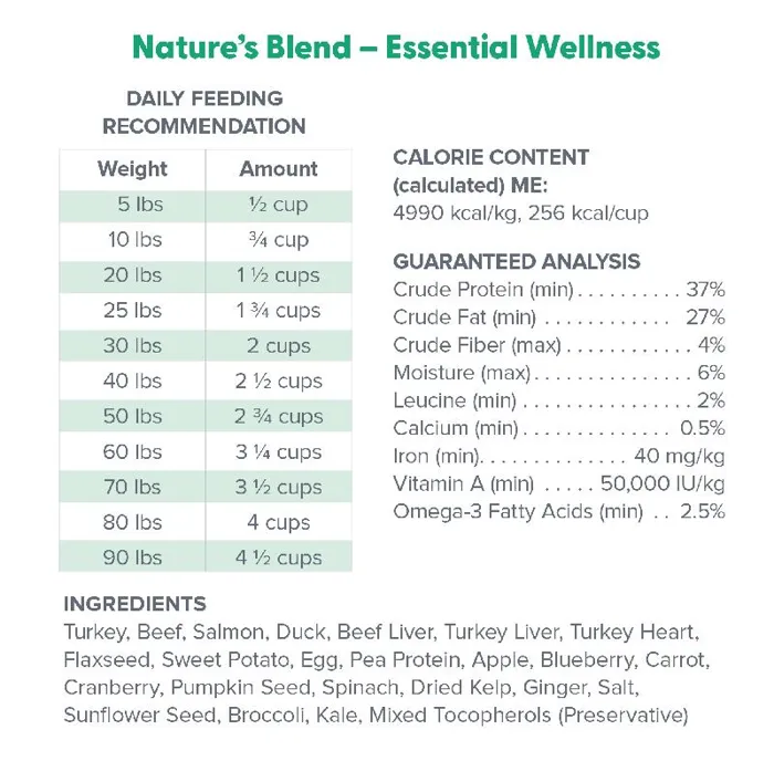 Dr. Marty's Nature’s Blend – Essential Wellness is designed to support your dog’s youthful energy, easy digestion, healthy teeth and skin, mobility, and healthy lifespan. Each batch is made from premium meats, veggies, fruit and seeds — and contains zero artificial preservatives, additives, fillers, or synthetic ingredients.