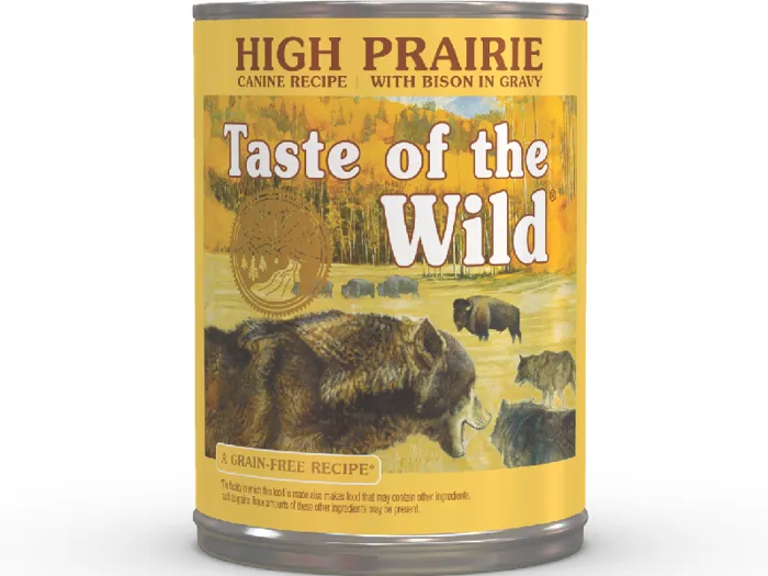 Feed your furry friend's wild side with Taste of the Wild High Prairie Grain-Free Canned Dog Food! Featuring real beef as the very first ingredient along with bison, roasted lamb and roasted venison, this delicious and nutritious, grain-free food includes real peas, potatoes and sweet potatoes that deliver the highly-digestible energy your active pooch needs to thrive. Tomatoes, blueberries and raspberries offer natural antioxidants to support her overall health and immunity. Plus, essential vitamins and nutrients are added to provide complete and balanced nutrition with a taste of the wild your furry friend constantly craves!