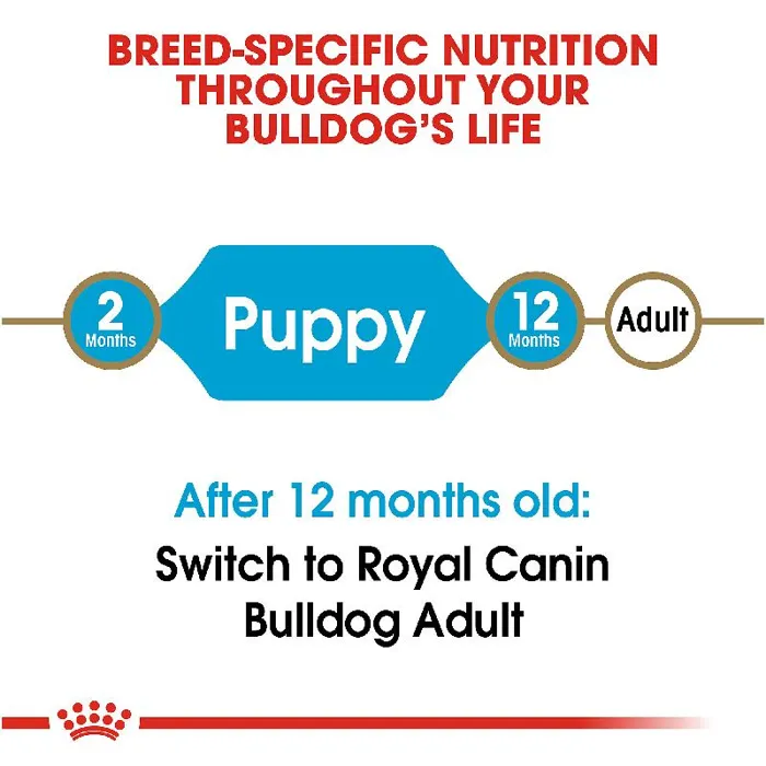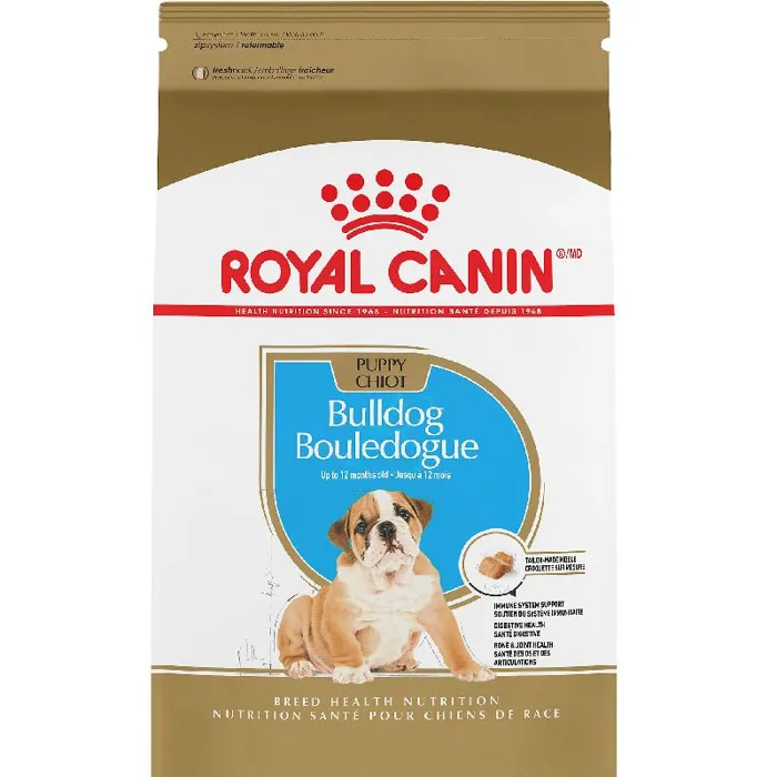 Royal Canin Bulldog Puppy dry dog food is designed to meet the nutritional needs of purebred Bulldogs 8 weeks to 15 months old