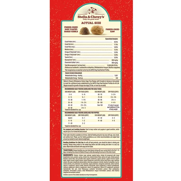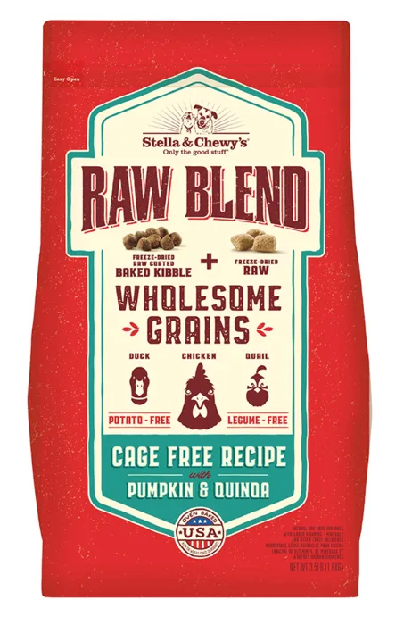 Stella & Chewy’s Raw Blend delivers a wholesome balance of protein, whole grains, fruits and vegetables coated with our irresistible freeze-dried raw with added pieces of our own freeze-dried raw pieces! It’s the perfect marriage of convenience and raw nutrition to give your pet energy, vitality and make mealtime special and fuel your pet’s wild side!