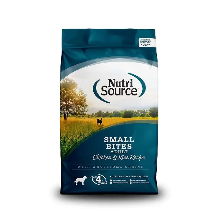 As a member of their grain inclusive series of dog foods, NutriSource® Adult Small Bites Chicken & Rice Recipe is formulated to meet AAFCO guidelines for all life stages.