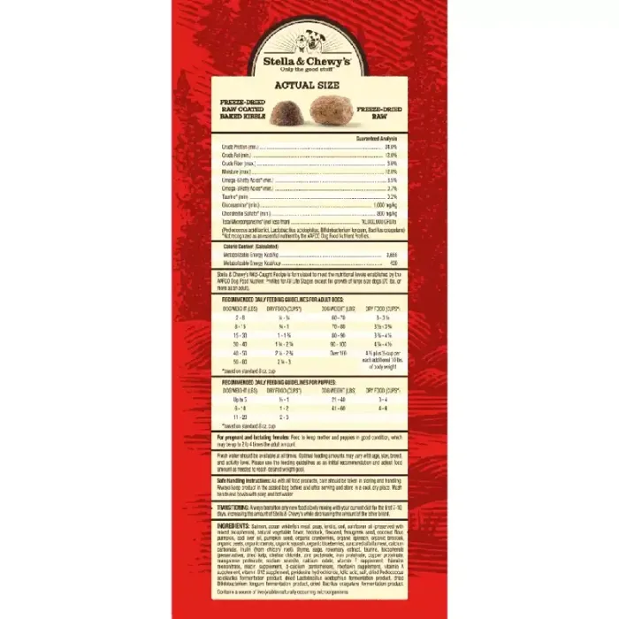 Stella & Chewy’s Raw Blend combines high-protein, grain-free baked kibble coated with their irresistible freeze-dried raw plus their own freeze-dried raw pieces together in the same bag. It’s the perfect marriage of convenience and raw nutrition to give your pet energy, vitality and make mealtime special and fuel your pet’s wild side!
