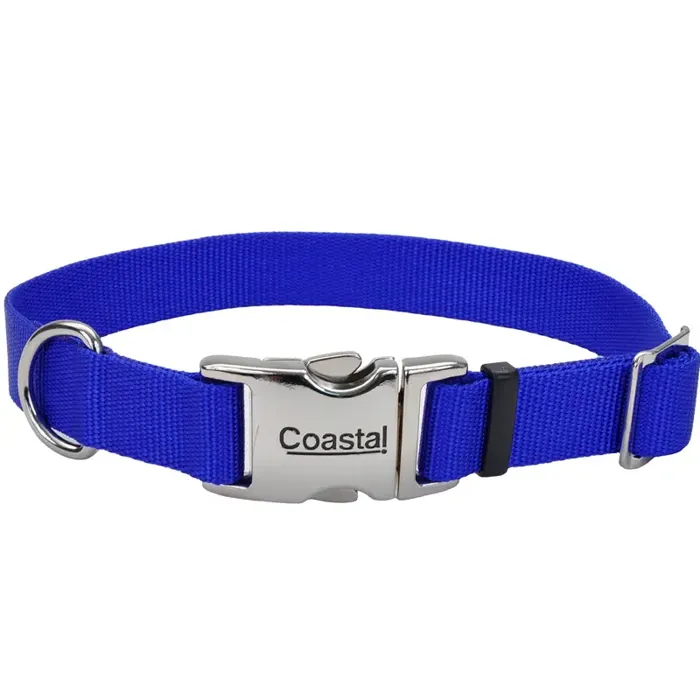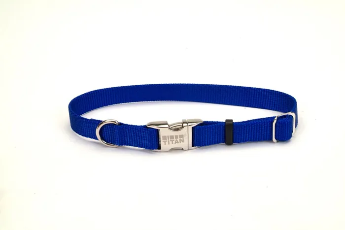 Adjustable Dog Collar With Metal Buckle - Blue 5/8
