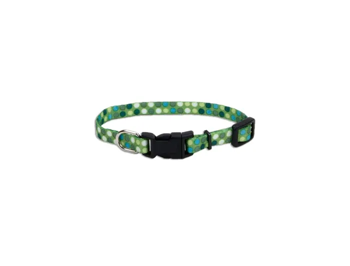Adjustable Patterned Dog Collar - Green Dots 3/8" x 06"-08"