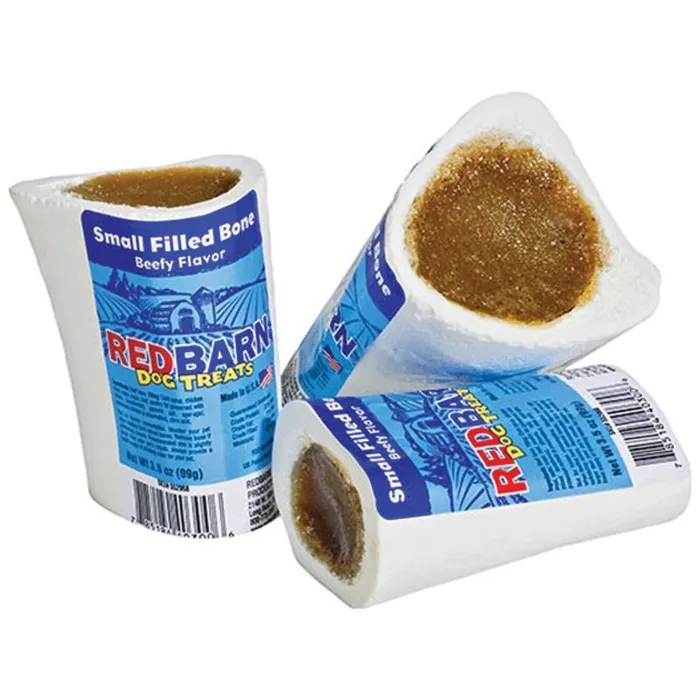 In a perfect world, there's a beefy treat at the center of every bone. Redbarn believes in a perfect world, and gives pups everywhere a reason to believe, too, with Redbarn Large Beef Filled Bones Dog Treats. Each 6-inch cattle bone is stuffed withe a delicious beefy mixture that's the perfect reward for being such a good pet and chewing a bone instead of a high heel.
