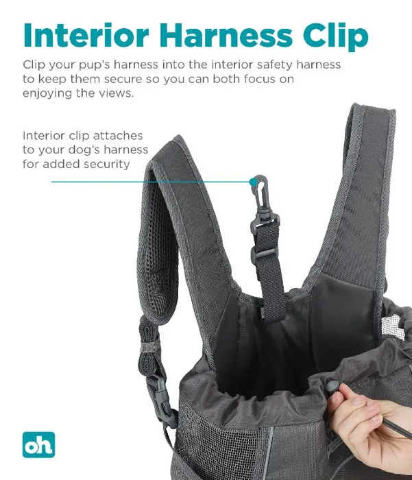 Clip your pup's harness into the interior safety harness and gently cinch in the top drawstring to keep them secure so you can both focus on the enjoying the views.