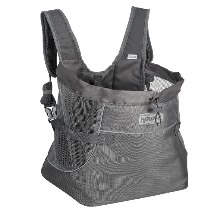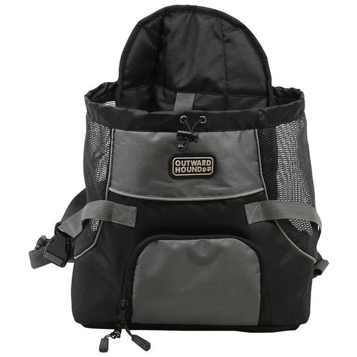 Taking your pup on your next adventure is easier with the Outward Hound PupPak Front Carrier. This hands-free front pack makes carrying your dog safe, comfortable & easy when you're on-the-go! Water-resistant fabric combined with mesh siding provides a secure and ventilated space for your pup to enjoy the scenery as they travel snuggly against your chest. Padded shoulder straps and adjustable buckles keep you comfortable while an interior harness clips in your furry friend for safe travels. The top drawstring can be cinched for a more secure fit. Dual side pouches and a front zipped pocket keep all your essentials in one convenient place. Sizing: Small: For dogs up to 10 LBS, MAX 8 in. long and 12 in. tall Medium: For dogs up to 20 LBS, MAX 10 in. long and 15 in. tall