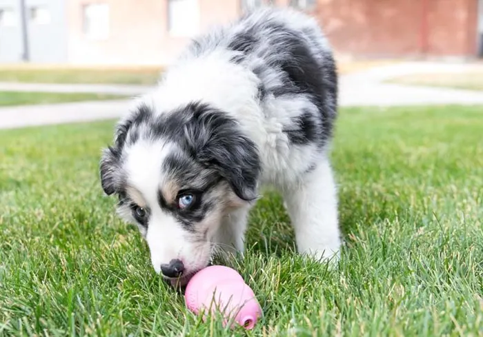 The Puppy KONG dog toy is customized for a growing puppy’s baby teeth, the unique, natural rubber formula is the most gentle within the KONG rubber toy line. Designed to meet the needs of a puppy’s 28-baby teeth, it helps teach appropriate chewing behavior while offering enrichment and satisfying a younger pup’s instinctual needs while the erratic bounce make it ideal for those pups that just want to play. A stuffed Puppy KONG occupies busy little ones while allowing pet parents the freedom to attend to their unique needs. Want to make crate training easier or extend play time? Be sure to stuff with puppy kibble and a dash of peanut butter. Add to the fun by including KONG Puppy Snacks and top with KONG Puppy Easy Treat.