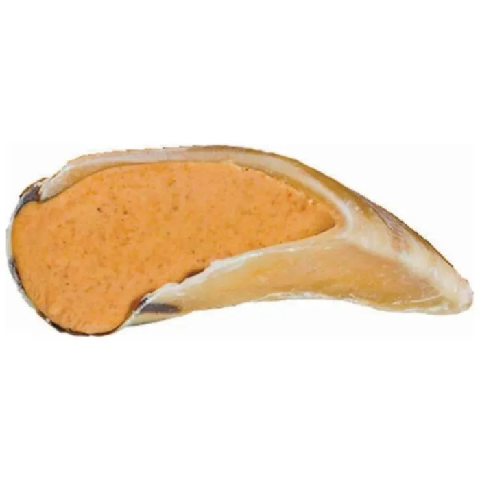 Redbarn's Natural Hooves are single-ingredient, naturally tasty and long-lasting for dogs who can't resist unique shapes and texture. This chew is high in protein and free from added ingredients. Made from cleaned and trimmed cattle, they are perfect for promoting dental health since the unique shape massages your pup's gums as they chew, gently scraping away tartar buildup. Best of all, you won’t have to worry about Redbarn’s hooves leaving stains or grease around the house. Want a hoof your dog will howl for? Try Redbarn’s Filled Hoof in peanut butter, cheese n’ bacon and beef flavor. The unique texture and shape of Redbarn’s Natural Hooves, with an added burst of delectable filling.