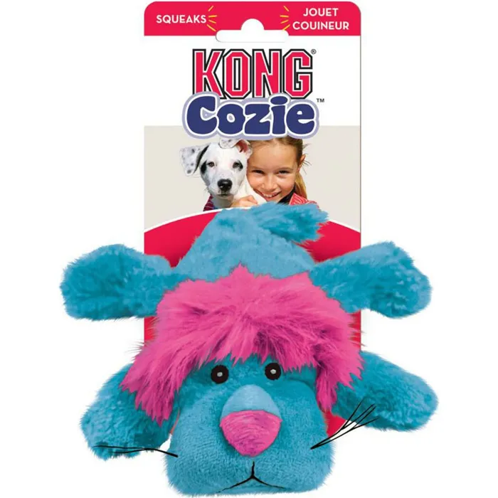 The KONG Cozie™ King Lion is a soft and luxuriously cuddly plush toy great for snuggle time comfort. Made with an extra layer of material for added strength, the KONG Cozie™ King Lion is an ideal toy for softer chew sessions and indoor fun. The KONG Cozie™ King Lion toy is sure to delight during snuggle and play time.* Deluxe plush for indoor snuggle time* Extra layer of material for added strength* Squeaker entices active play* Ideal for indoor fun* Adorable characters add to the fun
