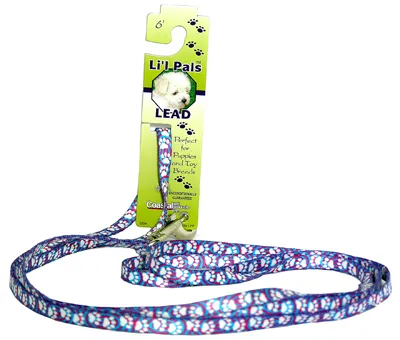 Patterned Dog Leash with E Z Snap - Light Blue Paw 3/8" x 6'