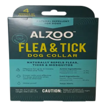 Plant-based repellent and preventive - no pesticide. The alzoo™ flea & tick collar utilizes plant-based active ingredients to effectively repels fleas, ticks and mosquitoes and help prevent bite and pest irritation.