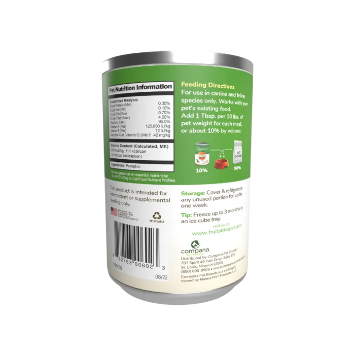 Pumpkin, Apple Pomace, Spinach, Tomato Pomace, Choline Chloride, Ginger, Spearmint, Ground Flax Seed, Cinnamon, Calcium Pantothenate (Vitamin B5), Pyroxidine Hydrochloride (Vitamin B6), Folic Acid (Vitamin B9), Vitamin B12 Supplement.