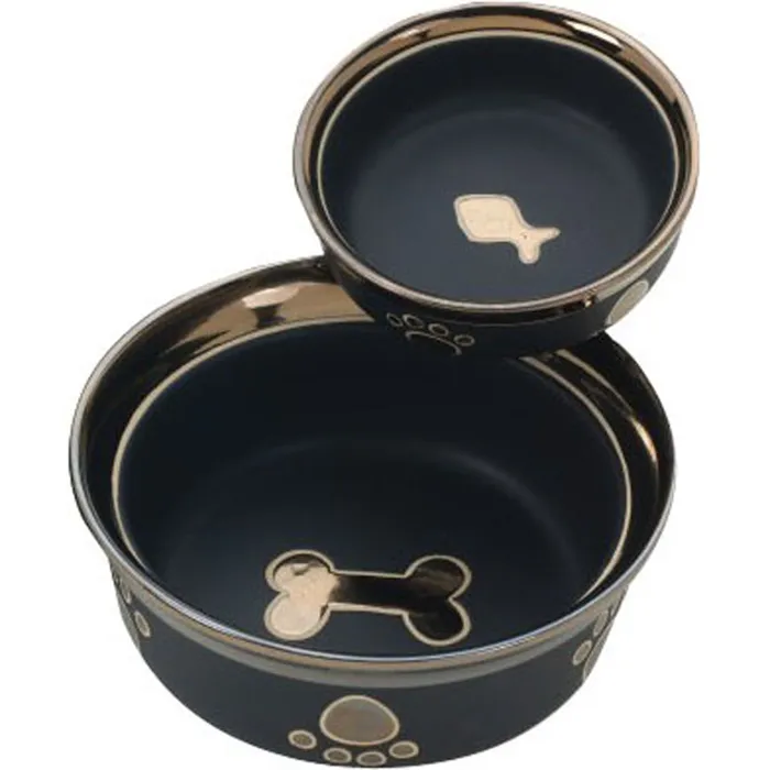 Ritz Copper Rim Dog Dish Black 7 Inch