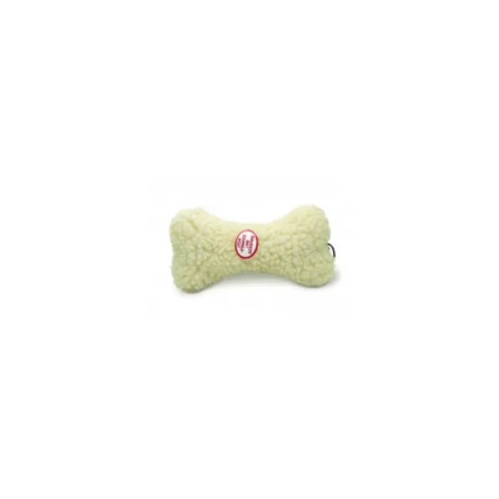 Heavy textured, natural colored fleece 9 and inch Fleece Bone design with squeaker.