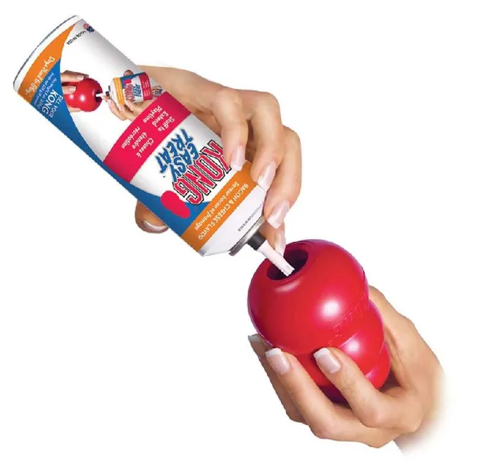 Store at room temperature. No refrigeration necessary. Clean KONG toy after each use. CONTENTS UNDER PRESSURE. DO NOT PUNCTURE OR EXPOSE TO EXCESSIVE HEAT.