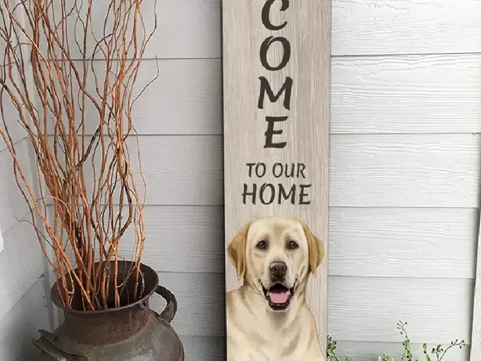 Lab, Yellow Welcome Sign